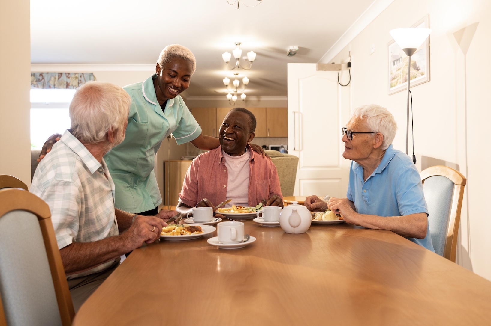 The nutritious meals that are served in the dining area are fully cooked on site by qualified chefs who can cater for special dietary requirements. Residents’ families are always welcome to join at mealtimes.